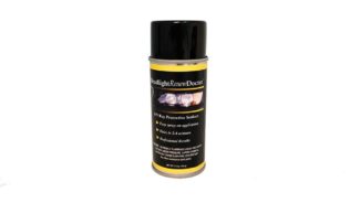 Using the spray can, spray an even “semi-gloss-coat” over entire headlight surface using sweeping left to right motion. Allow 1st coat to dry approx. 2-3 minutes.* Then apply a second gloss-coat coat evenly over entire surface. Refer to website video for applying UV Ray protective Sealant process! (You may want to practice spraying a small amount on a board before applying Sealant to the headlight.)